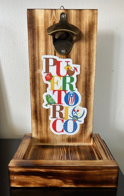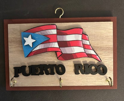 Porta llaves con la bandera de PR en madera. Medidas: 7" x 4 1/2"