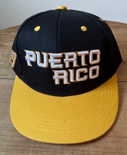 Gorra estilo Clemente con el numero 21, bandera y bates de baseball color anaranjado