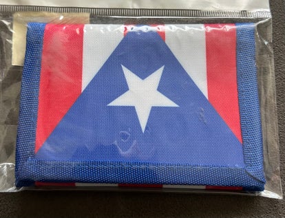 Billetera con la bandera de Puerto Rico. Mide 4 1/2" x 3"