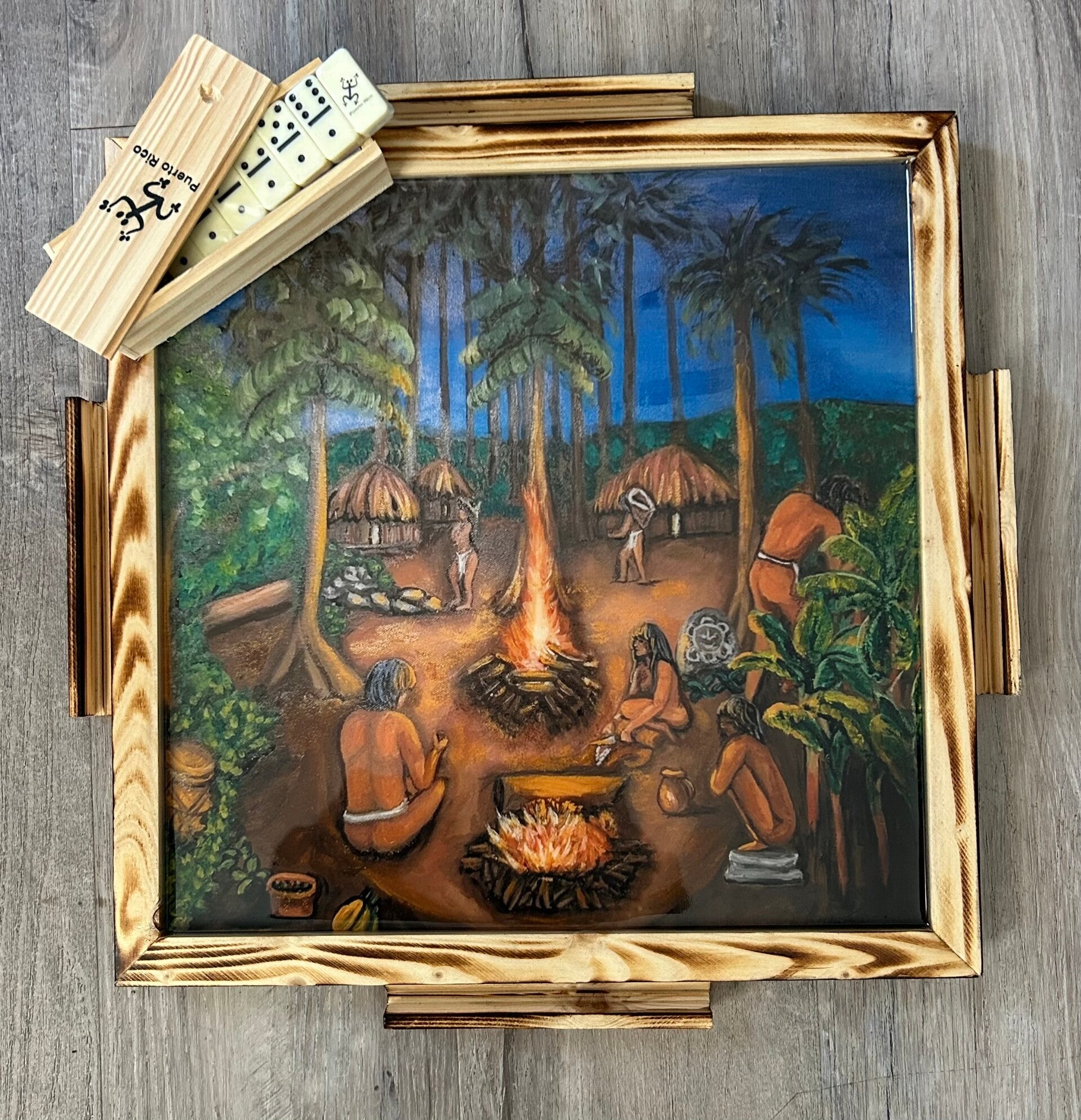 Mini mesa de domino en madera solida con cubierta en resina. Ideal para llevar tu juego a cualquier lugar o para hacer un regalo unico a tu ser querido. Medidas 13" x 13". ( Incluye los mini dominos )