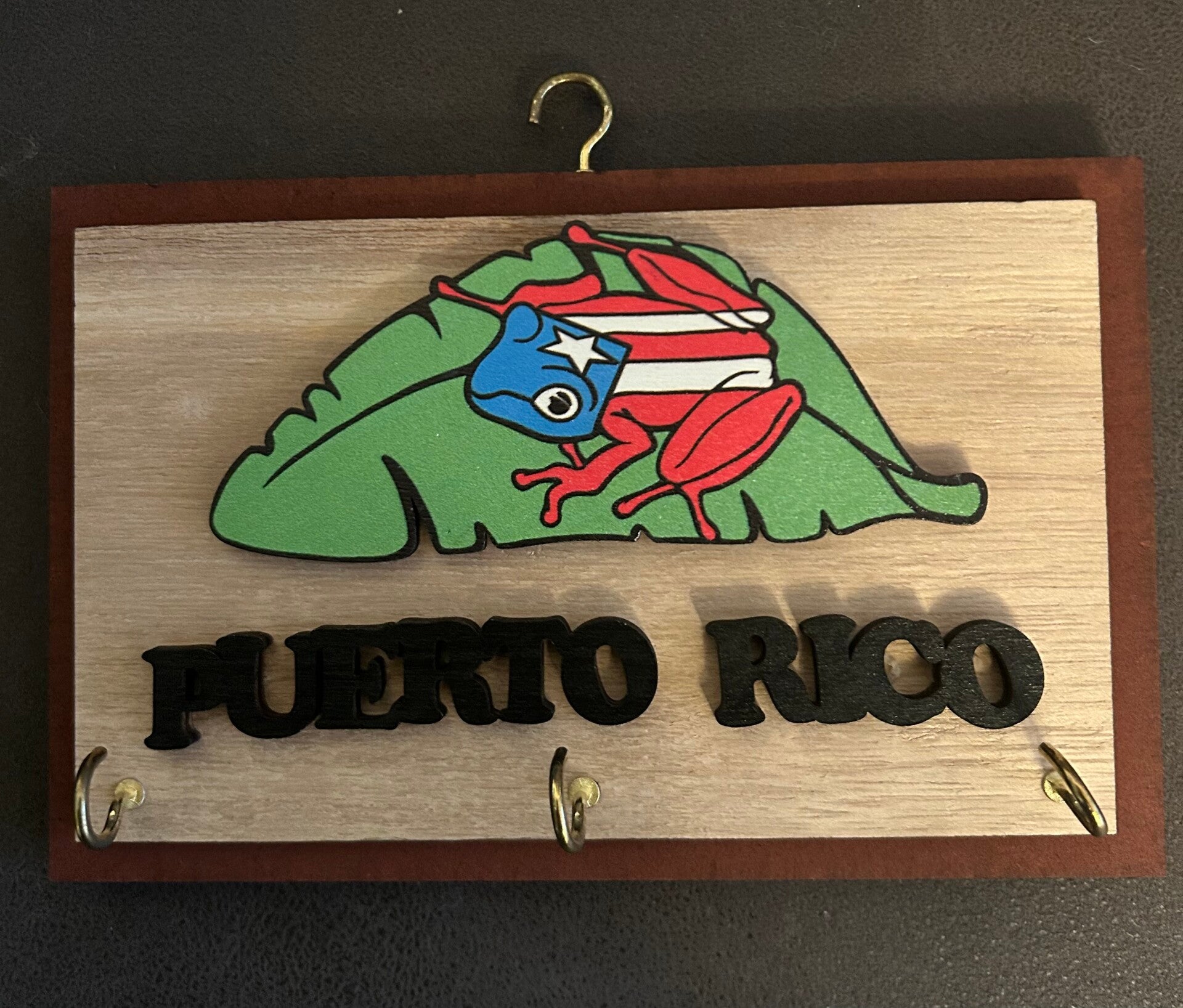 Porta llaves con el coqui de PR en madera. Medidas: 7" x 4 1/2"