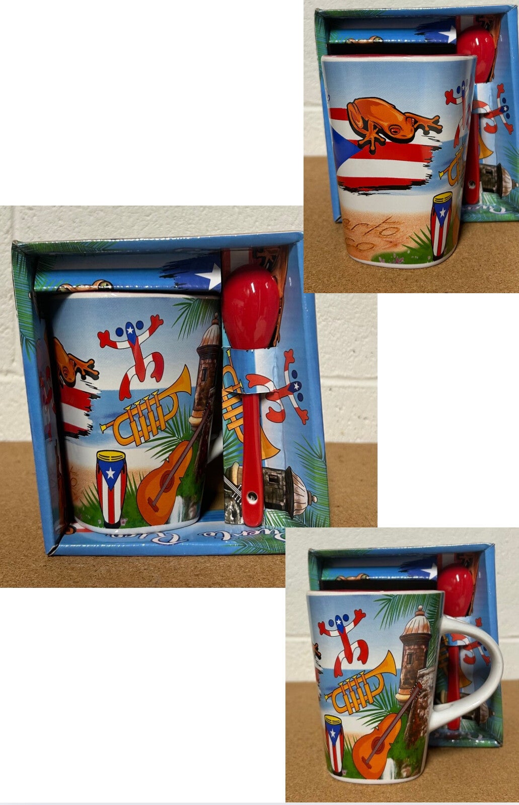 Estas tazas de cerámica son aptas para microondas y lavavajillas. Miden 4½" de alto y vienen en una caja decorativa.