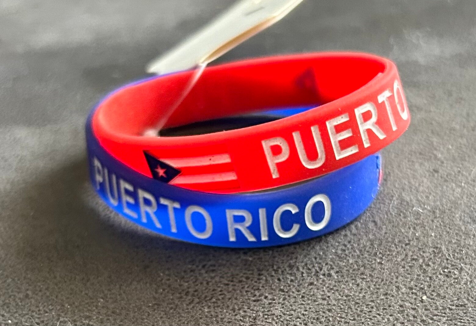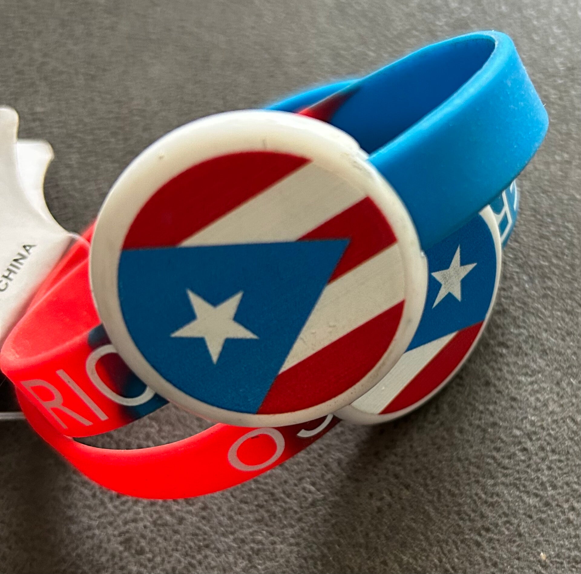 Pulseras de goma con bandera de Puerto Rico. (Cada paquete incluye 2 pulseras)
