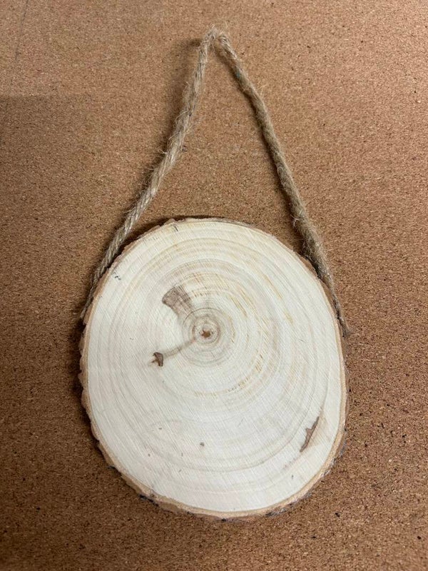 Handpainted woodcraft for hanging. Meausures 5" L x 4" W.